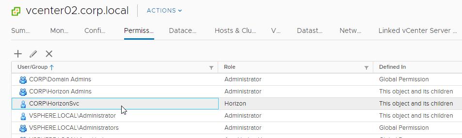 vCenter Role for Horizon