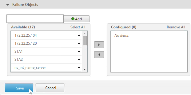 - Select the AAA Virtual Server that has Login Schema, Advanced Authentication Policy, and Authentication Policy Labels configured. The AAA Virtual Server does not need an IP address. Click Select.