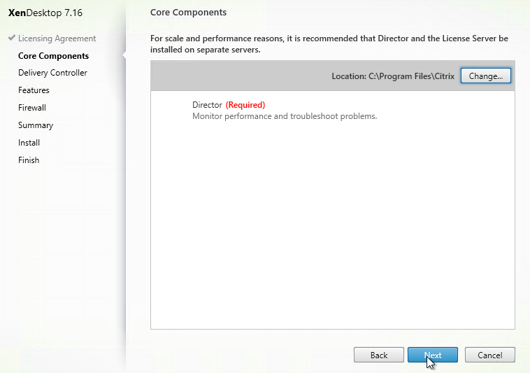 - If the Delivery Controller servers are on the same hypervisor cluster, then ensure anti-affinity is configured to keep them on separate hypervisor hosts.