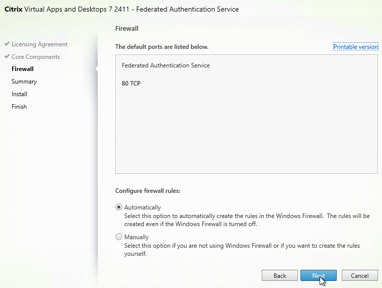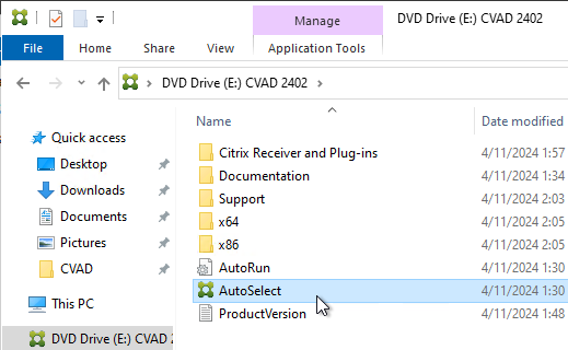 1. On the Federated Authentication Service server, go to the Citrix Virtual Apps and Desktops, or XenDesktop 7.9, or newer ISO, and run AutoSelect.exe. Or you can download the standalone installer and run that.