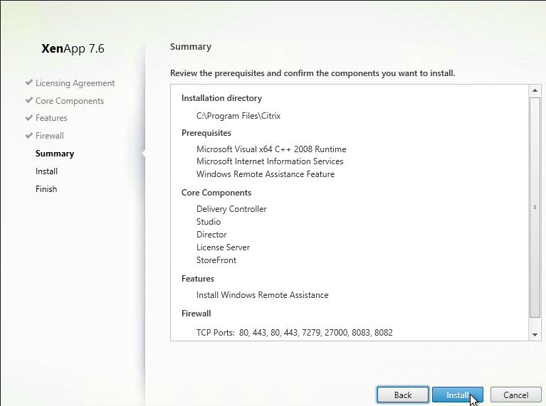 - Click Start next to either XenApp or XenDesktop. The only difference is the product name displayed in the installation wizard.