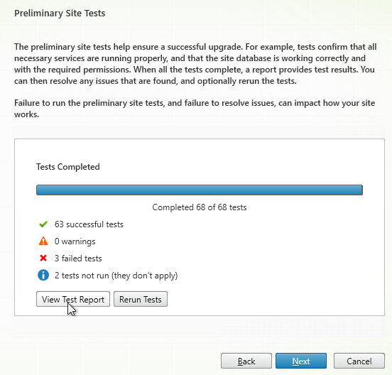 - If any tests fail, then click View Test Report.