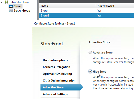 - One workaround is to hide the store that you don’t want visible externally. See How to configure Receiver to a Store that is not advertised for special syntax.